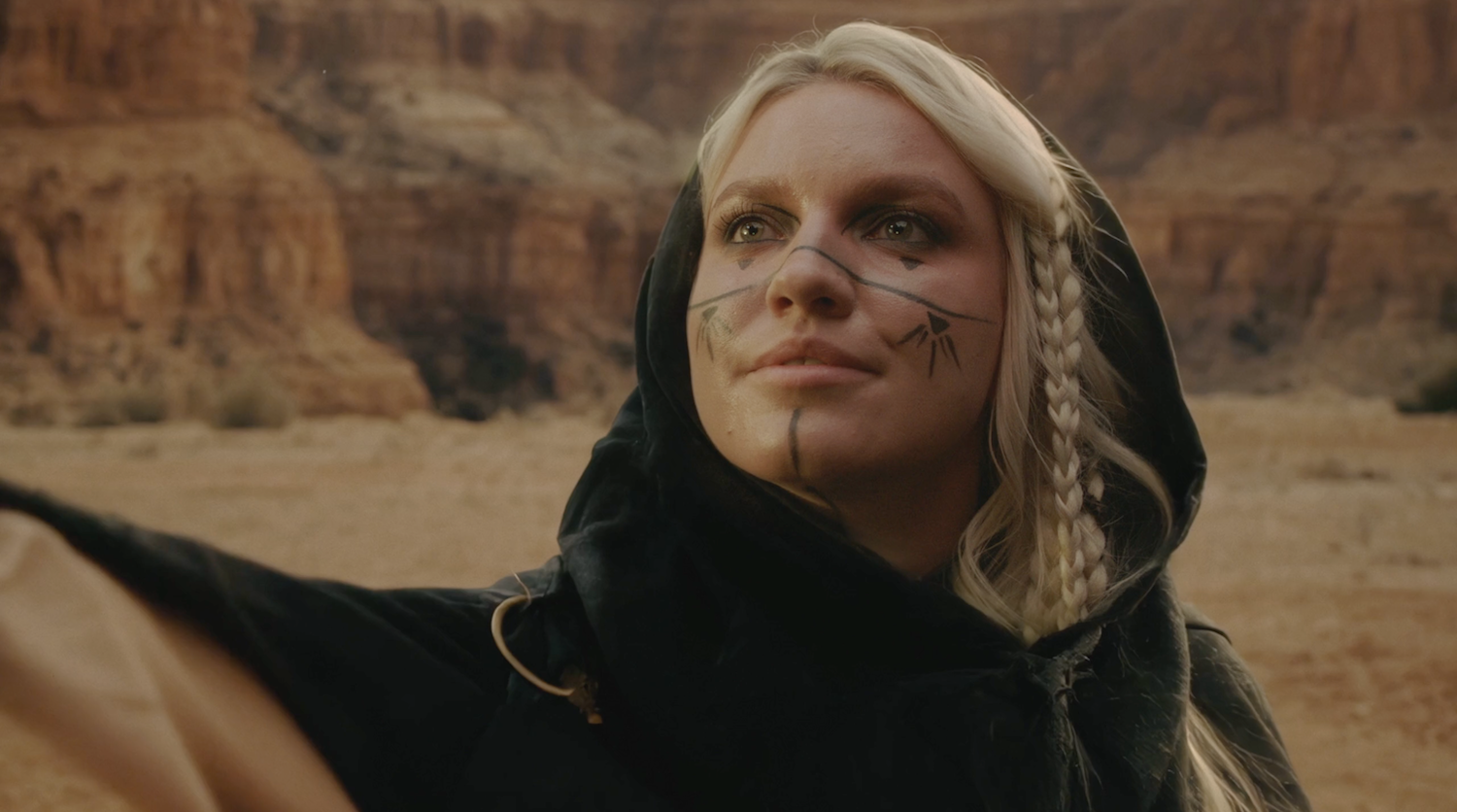 The video unfolds like a surreal journey. Kimberlin wanders a post-apocalyptic world and encounters an astronaut lying in barren dunes. A touch spirals the figure back through time and space, transforming the wasteland into a thriving, fertile landscape. When the astronaut removes the helmet, it is Kimberlin herself, now standing in a vast sunflower field beneath a clear blue sky—the colors of Ukraine. The symbolism is unmistakable: peace is not only possible, it is necessary, and it begins with recognition of shared humanity.